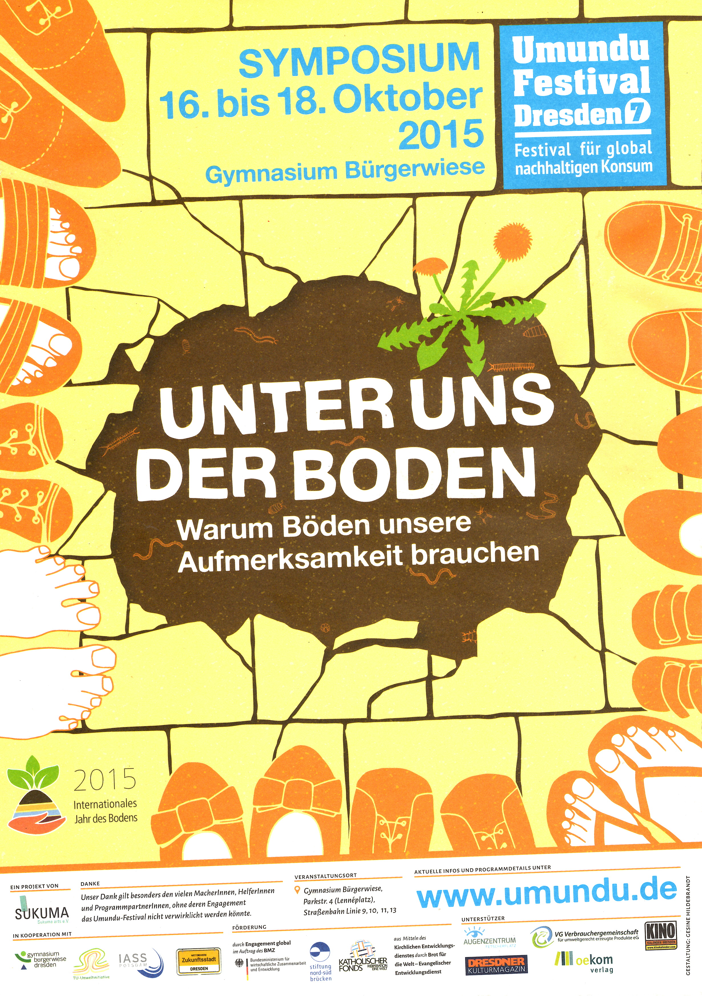 Plakat vom Umundu-Festival in Dresden 2015 "Unter uns der Boden"